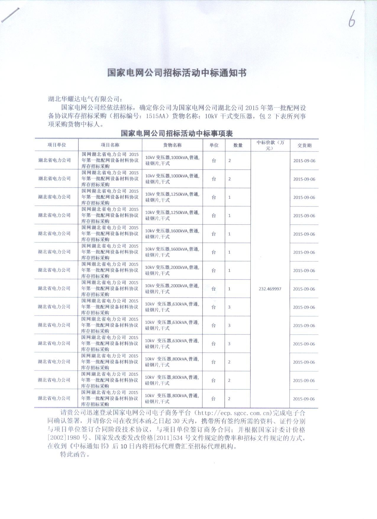 人生就是博电气中标国家电网公司湖北电网2015年第一批配网设备协议库存招标采购(1515AA批次 )