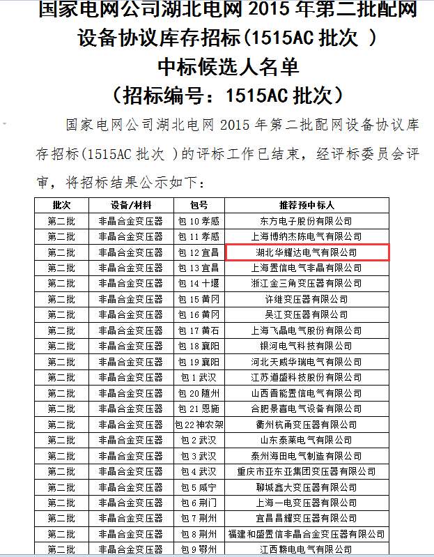 恭喜人生就是博中标国家电网非晶合金变压器项目,共计573万