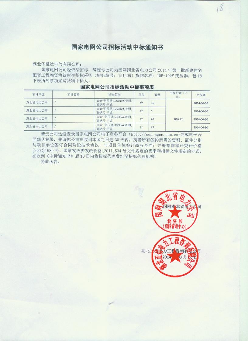 恭喜公司在2014年开年中标国网干变项目,共计816.22万元,希望公司在今年取得更大的成绩!